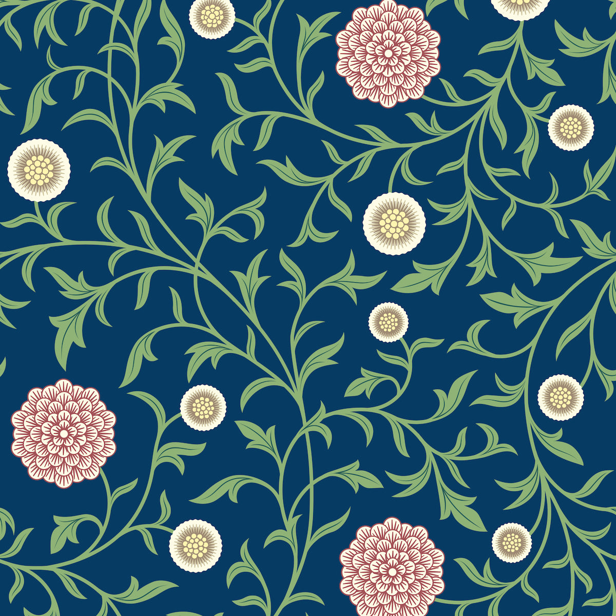 SKU:Morris Collections - 1051-1 - Scroll Wallpaper - Scroll Dark Blue